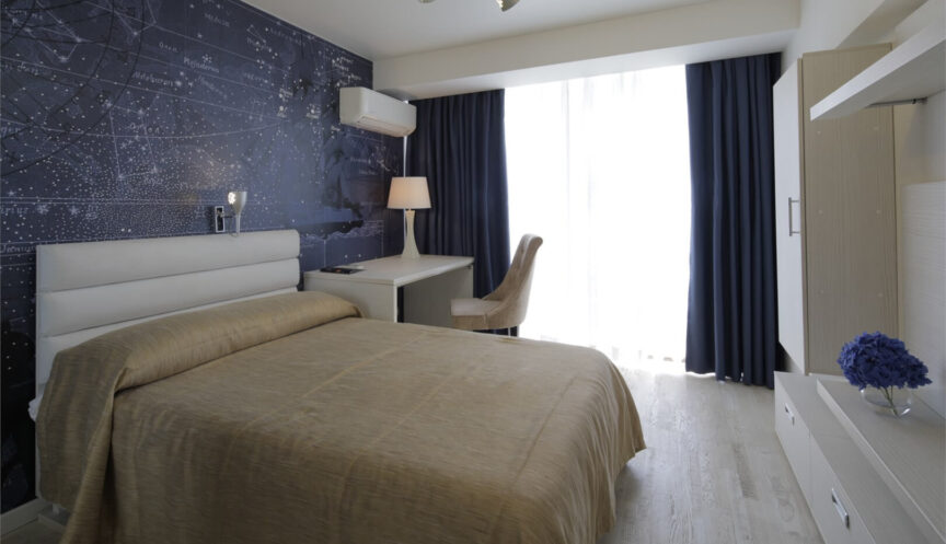 Отель расположен на первой береговой линии в 50 метрах от собственного галечного пляжа.