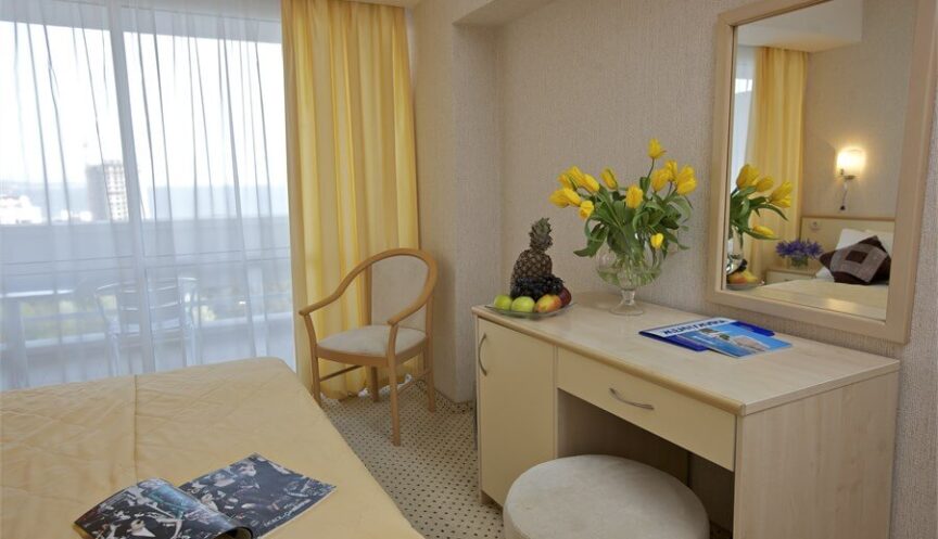 В номере есть необходимая мебель: вешалка, зеркало, односпальные кровати или одна двуспальная кровать, прикроватные тумбочки, стол, стулья и шкаф. Также в номере есть оборудование: кондиционер, мини-холодильник, набор посуды, сейф и ЖК-телевизор. Для связи установлен телефон.
